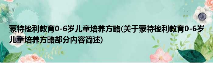 蒙特梭利教育0-6岁儿童培养方略(关于蒙特梭利教育0-6岁儿童培养方略部分内容简述)