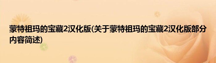 蒙特祖玛的宝藏2汉化版(关于蒙特祖玛的宝藏2汉化版部分内容简述)