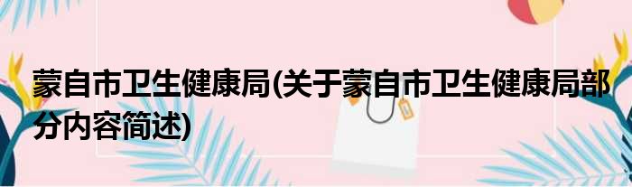 蒙自市卫生健康局(关于蒙自市卫生健康局部分内容简述)