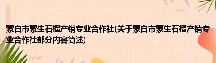 蒙自市蒙生石榴产销专业合作社(关于蒙自市蒙生石榴产销专业合作社部分内容简述)