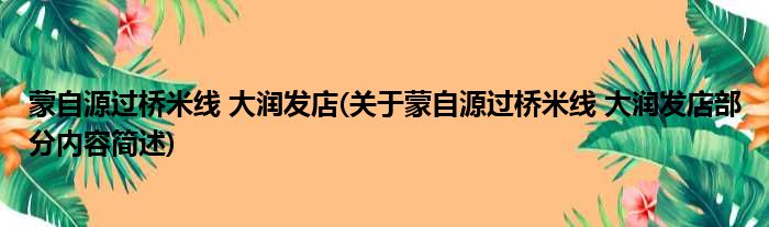 蒙自源过桥米线 大润发店(关于蒙自源过桥米线 大润发店部分内容简述)