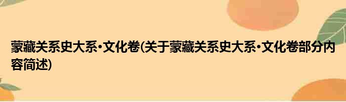 导读 大家好,今天小方来说说一篇关于蒙藏关系史大系·文化卷,关于蒙藏关系史大系·文化卷部分内容简述的文章,那么现在就为大家来简单介绍下,