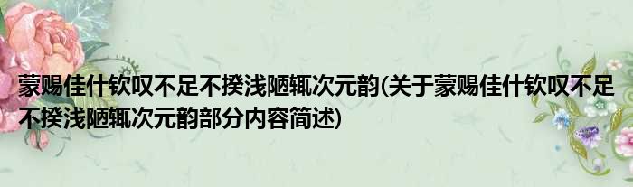蒙赐佳什钦叹不足不揆浅陋辄次元韵(关于蒙赐佳什钦叹不足不揆浅陋辄次元韵部分内容简述)