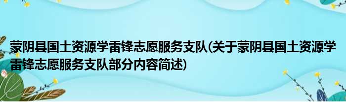 蒙阴县国土资源学雷锋志愿服务支队(关于蒙阴县国土资源学雷锋志愿服务支队部分内容简述)