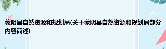 蒙阴县自然资源和规划局(关于蒙阴县自然资源和规划局部分内容简述)