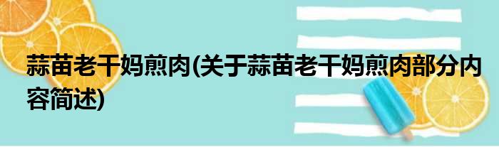 蒜苗老干妈煎肉(关于蒜苗老干妈煎肉部分内容简述)