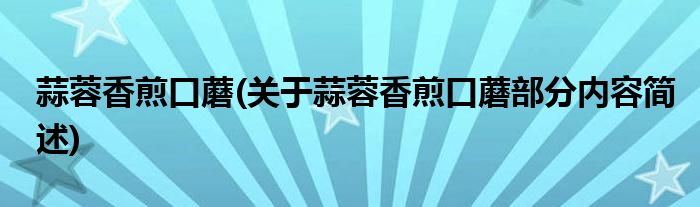 蒜蓉香煎口蘑(关于蒜蓉香煎口蘑部分内容简述)