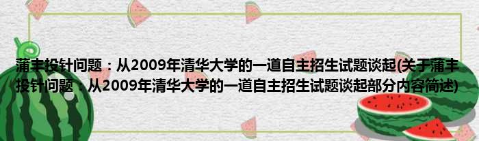 蒲丰投针问题:从2009年清华大学的一道自主招生试题谈起(关于蒲丰投针问题:从2009年清华大学的一道自主招生试题谈起部分内容简述)