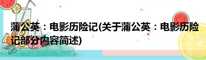 蒲公英:电影历险记(关于蒲公英:电影历险记部分内容简述)