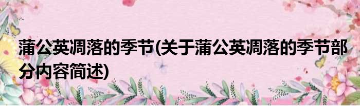 蒲公英凋落的季节(关于蒲公英凋落的季节部分内容简述)