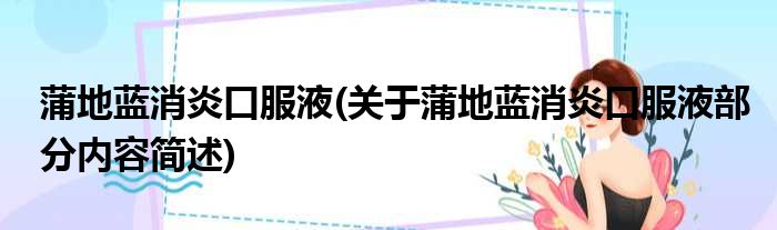 蒲地蓝消炎口服液(关于蒲地蓝消炎口服液部分内容简述)