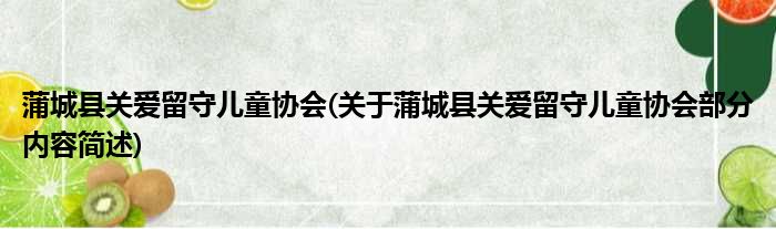 蒲城县关爱留守儿童协会(关于蒲城县关爱留守儿童协会部分内容简述)