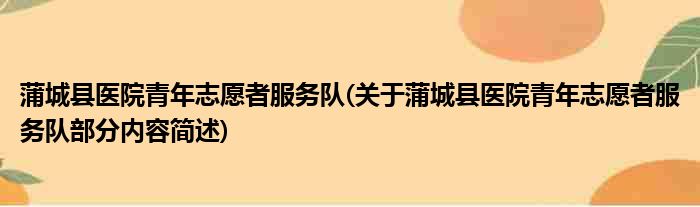 蒲城县医院青年志愿者服务队(关于蒲城县医院青年志愿者服务队部分内容简述)