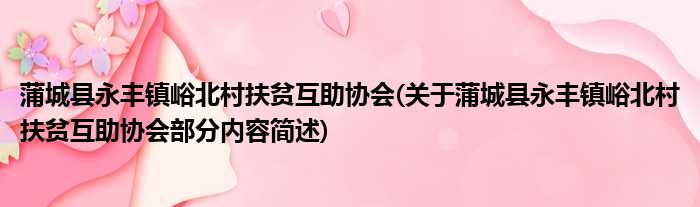蒲城县永丰镇峪北村扶贫互助协会(关于蒲城县永丰镇峪北村扶贫互助协会部分内容简述)