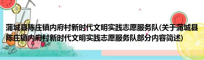 蒲城县陈庄镇内府村新时代文明实践志愿服务队(关于蒲城县陈庄镇内府村新时代文明实践志愿服务队部分内容简述)