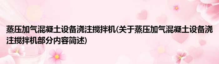 导读 大家好,今天小方来说说一篇关于蒸压加气混凝土设备浇注搅拌机,关于蒸压加气混凝土设备浇注搅拌机部分内容简述的文章,那么现在就为大家来