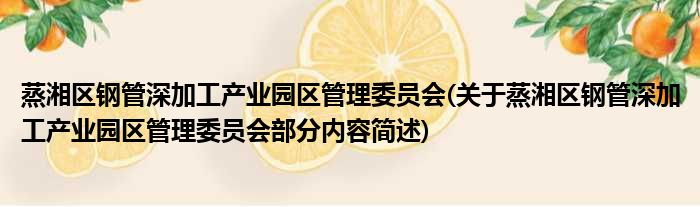 蒸湘区钢管深加工产业园区管理委员会(关于蒸湘区钢管深加工产业园区管理委员会部分内容简述)