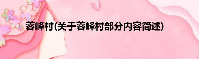 导读 大家好,今天小方来说说一篇关于蓉峰村,关于蓉峰村部分内容简述的文章,那么现在就为大家来简单介绍下,希望对各位小伙伴们有所帮助。