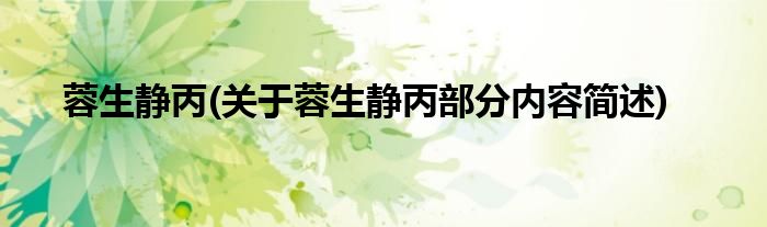 蓉生静丙(关于蓉生静丙部分内容简述)