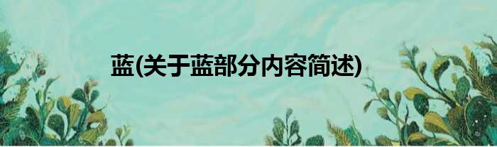 导读 大家好,今天小方来说说一篇关于蓝,关于蓝部分内容简述的文章,那么现在就为大家来简单介绍下,希望对各位小伙伴们有所帮助。
