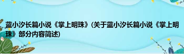 导读 大家好,今天小方来说说一篇关于蓝小汐长篇小说《掌上明珠》,关于蓝小汐长篇小说《掌上明珠》部分内容简述的文章,那么现在就为大家来简单
