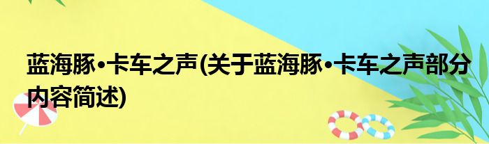 蓝海豚·卡车之声(关于蓝海豚·卡车之声部分内容简述)