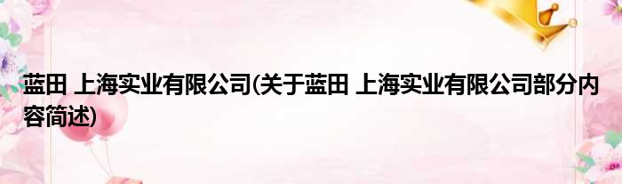 蓝田 上海实业有限公司(关于蓝田 上海实业有限公司部分内容简述)