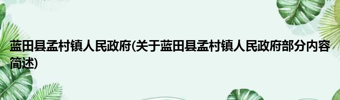 蓝田县孟村镇人民政府(关于蓝田县孟村镇人民政府部分内容简述)