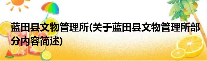 蓝田县文物管理所(关于蓝田县文物管理所部分内容简述)