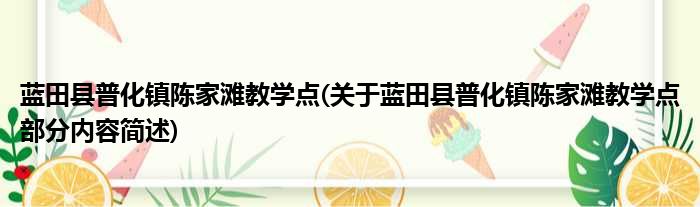 蓝田县普化镇陈家滩教学点(关于蓝田县普化镇陈家滩教学点部分内容简述)