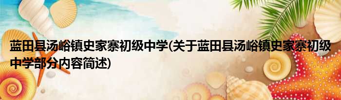蓝田县汤峪镇史家寨初级中学(关于蓝田县汤峪镇史家寨初级中学部分内容简述)