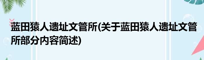 蓝田猿人遗址文管所(关于蓝田猿人遗址文管所部分内容简述)