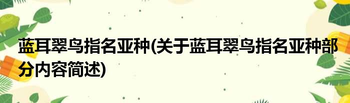 蓝耳翠鸟指名亚种(关于蓝耳翠鸟指名亚种部分内容简述)
