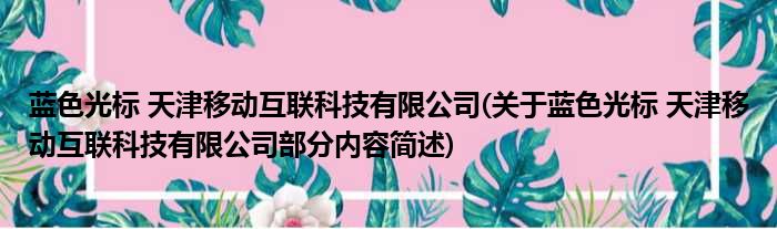 导读 大家好,今天小方来说说一篇关于蓝色光标 天津移动互联科技有限公司,关于蓝色光标 天津移动互联科技有限公司部分内容简述的文章,那么现