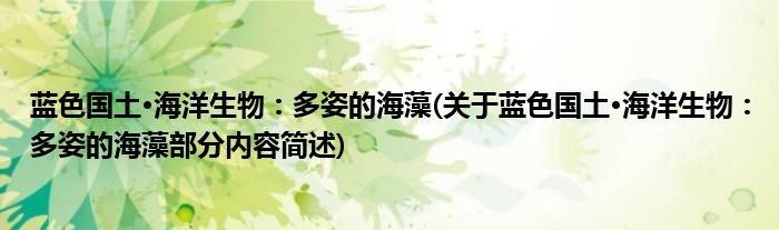 大家好,今天小方来说说一篇关于蓝色国土·海洋生物:多姿的海藻,关于蓝色国土·海洋生物:多姿的海藻部分内容简述的文章,那么现在就为大家来简单介绍下,希望对各位小伙伴们有所帮助。