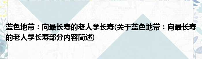 蓝色地带:向最长寿的老人学长寿(关于蓝色地带:向最长寿的老人学长寿部分内容简述)