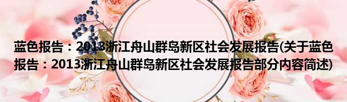 蓝色报告:2013浙江舟山群岛新区社会发展报告(关于蓝色报告:2013浙江舟山群岛新区社会发展报告部分内容简述)