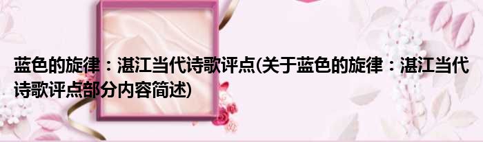 大家好,今天小方来说说一篇关于蓝色的旋律:湛江当代诗歌评点,关于蓝色的旋律:湛江当代诗歌评点部分内容简述的文章,那么现在就为大家来简单介绍下,希望对各位小伙伴们有所帮助。