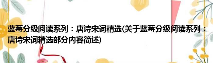 导读 大家好,今天小方来说说一篇关于蓝莓分级阅读系列:唐诗宋词精选,关于蓝莓分级阅读系列:唐诗宋词精选部分内容简述的文章,那么现在就为大