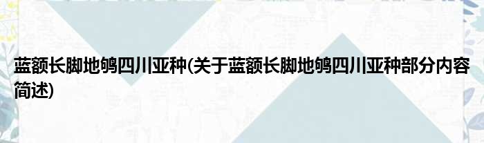 蓝额长脚地鸲四川亚种(关于蓝额长脚地鸲四川亚种部分内容简述)