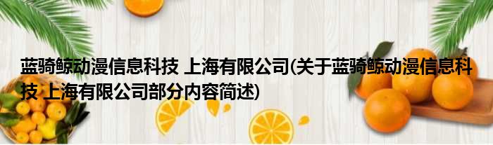 蓝骑鲸动漫信息科技 上海有限公司(关于蓝骑鲸动漫信息科技 上海有限公司部分内容简述)
