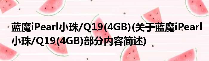 蓝魔iPearl小珠/Q19(4GB)(关于蓝魔iPearl小珠/Q19(4GB)部分内容简述)