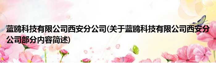 蓝鸥科技有限公司西安分公司(关于蓝鸥科技有限公司西安分公司部分内容简述)
