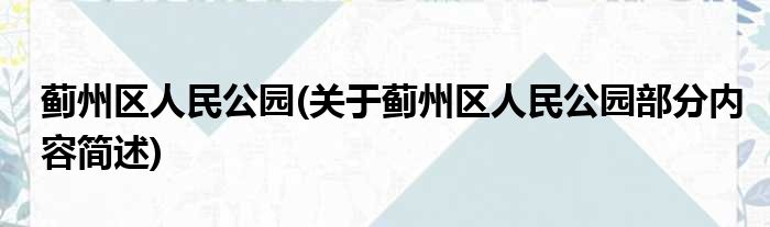 蓟州区人民公园(关于蓟州区人民公园部分内容简述)