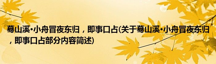 蓦山溪·小舟冒夜东归,即事口占(关于蓦山溪·小舟冒夜东归,即事口占部分内容简述)