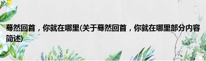 蓦然回首,你就在哪里(关于蓦然回首,你就在哪里部分内容简述)