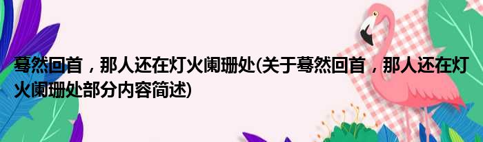 蓦然回首,那人还在灯火阑珊处(关于蓦然回首,那人还在灯火阑珊处部分内容简述)