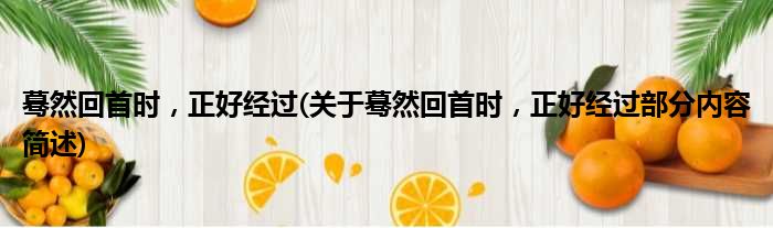 蓦然回首时,正好经过(关于蓦然回首时,正好经过部分内容简述)