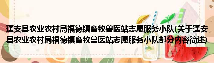 蓬安县农业农村局福德镇畜牧兽医站志愿服务小队(关于蓬安县农业农村局福德镇畜牧兽医站志愿服务小队部分内容简述)