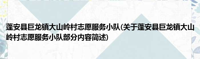 蓬安县巨龙镇大山岭村志愿服务小队(关于蓬安县巨龙镇大山岭村志愿服务小队部分内容简述)